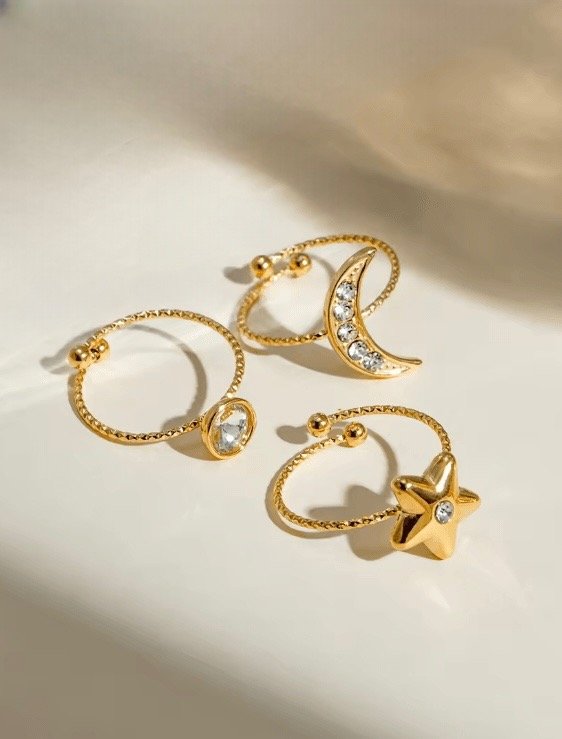 Set de 3 anillos de acero quirúrgico con baño en oro 18k