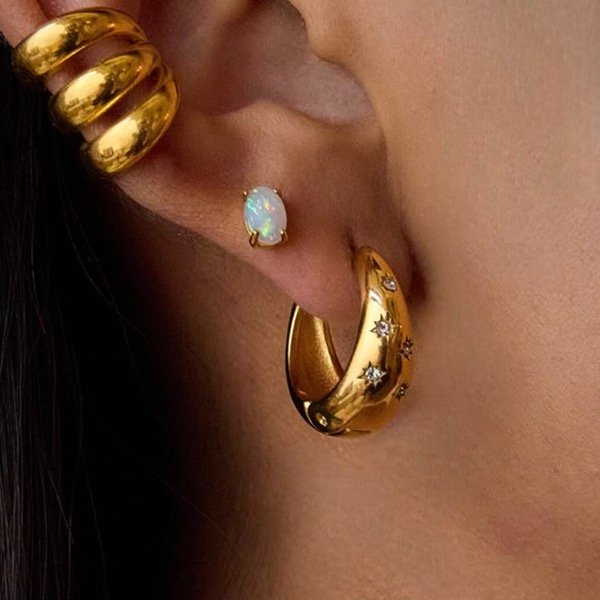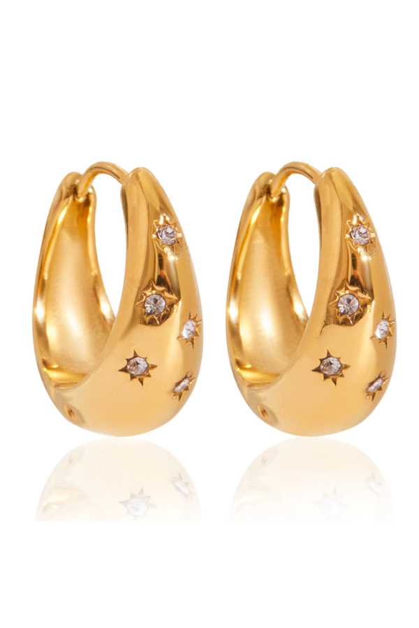 Par de aros de acero quirurgico 316L con baño en oro con diamante de imitación