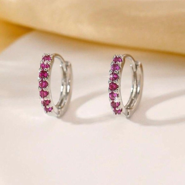 Aros argolla de acero con baño en oro, con zirconias, cierre a presión