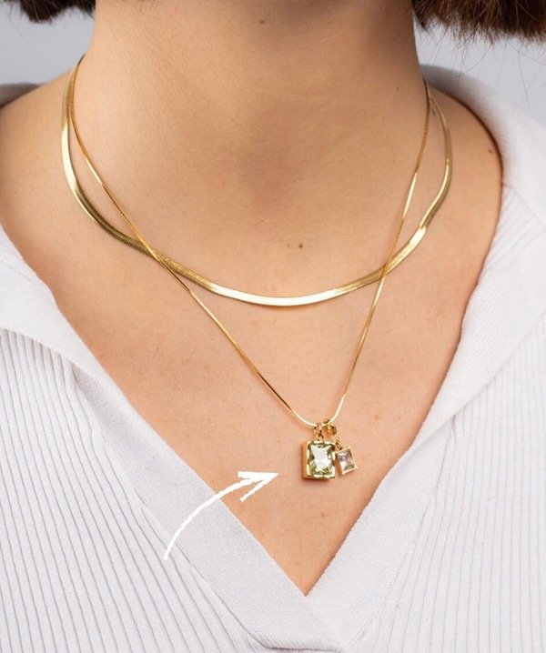 Collar de 2 piezas con dijes, de acero 316L con baño en oro.