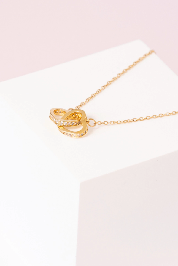 Collar 2 corazones de acero quirúrgico con baño en oro