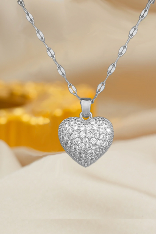Collar con dije corazón, de acero quirúrgico, se abre y tiene una perla en el interior.