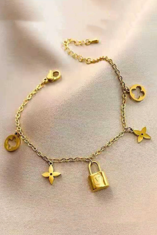 Pulsera con dijes de acero quirúrgico con baño en oro 18K
