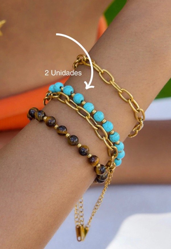 Pulsera de acero quirúrgico con baño en oro. Incluye 2 pulseras.
