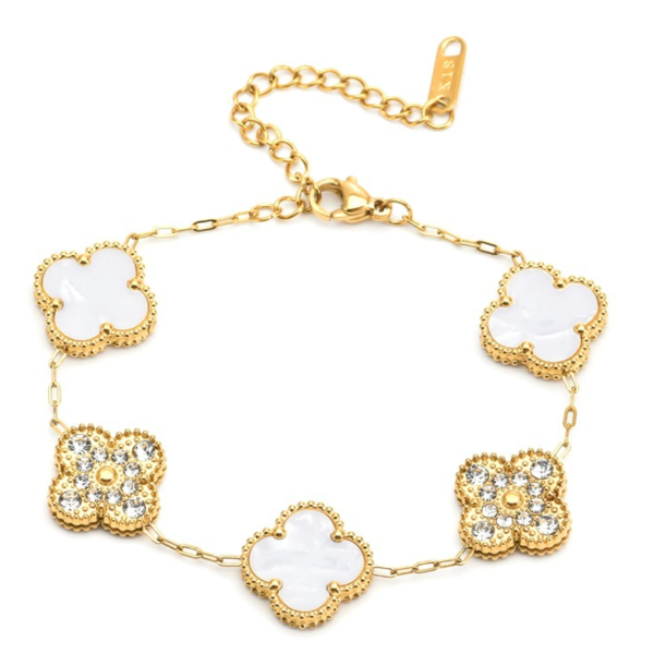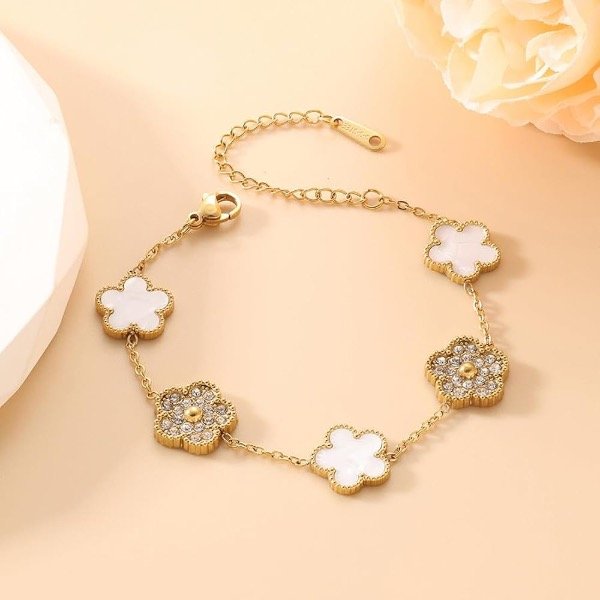 Pulsera trébol de acero quirúrgico 316L con baño en oro 18 K