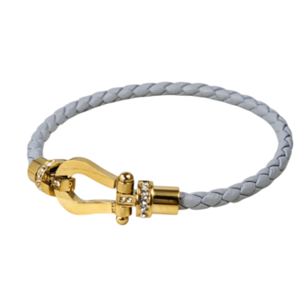 Pulsera de cordón trenzado con hebilla de cierre magnético en forma de herradura de acero quirúrgico con zirconias