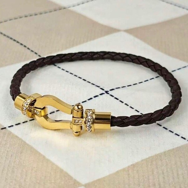 Pulsera de cordón trenzado con hebilla de cierre magnético en forma de herradura de acero quirúrgico con zirconias
