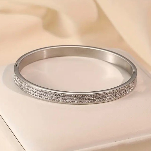 OPulsera esclava de acero quirúrgico. Con piedras de zirconias.