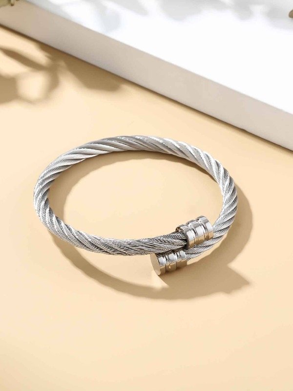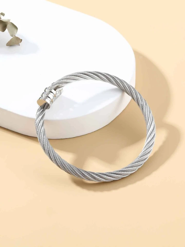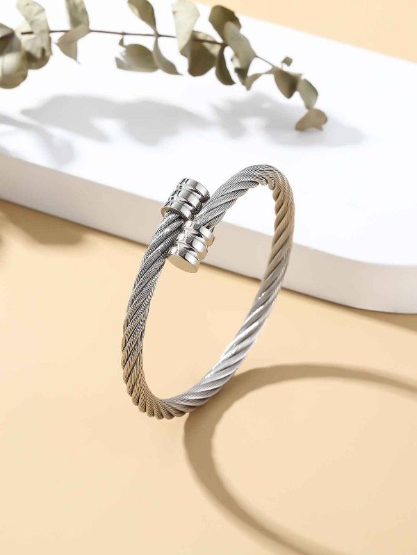 Pulsera de acero quirúrgico con diseño de cable trenzado.