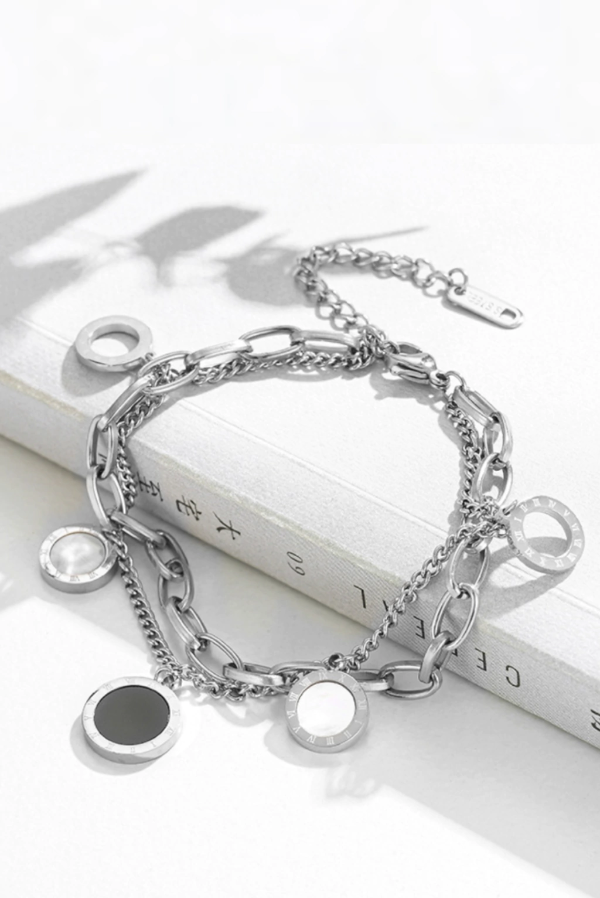 Pulsera de acero quirúrgico con doble cadena y dijes.