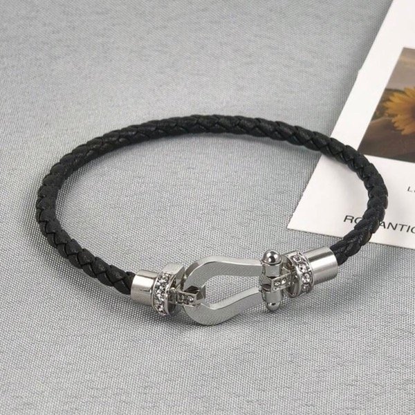 Pulsera de cordón trenzado con hebilla de cierre magnético en forma de herradura de acero quirúrgico con zirconias