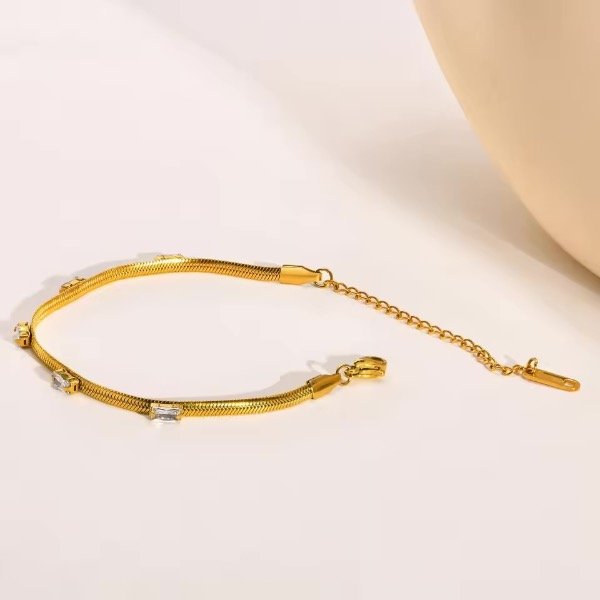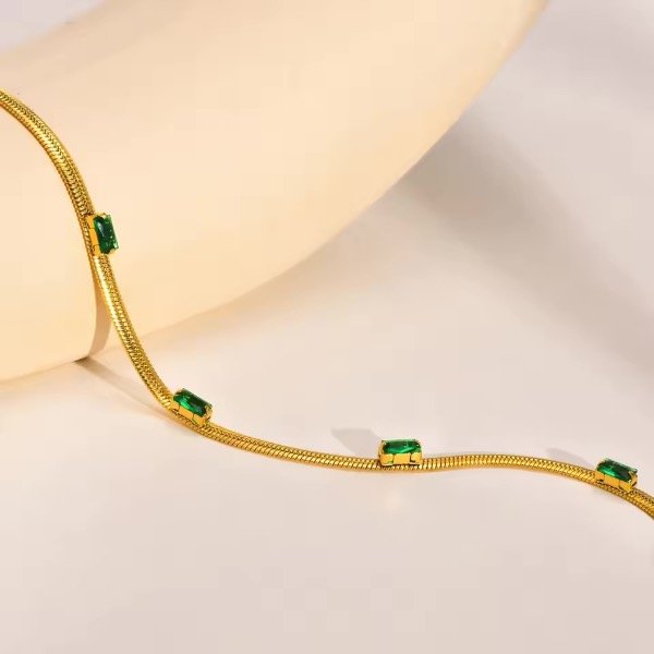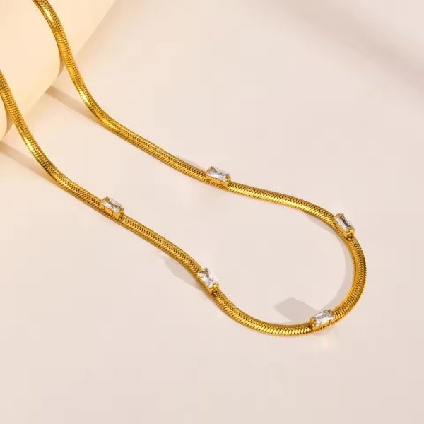 Pulsera y collar de cadena de serpiente de acero quirúrgico con baño en oro, con zirconias.
